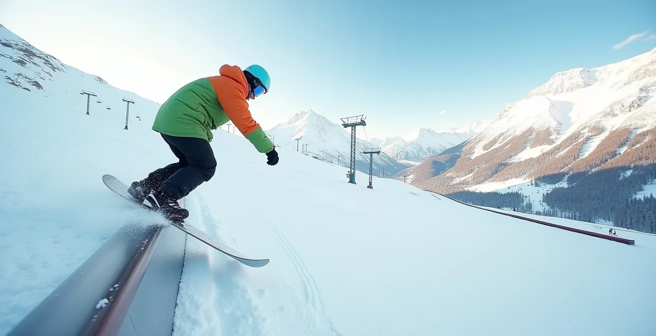 Tu enchaînes les 360 sur les kickers, tu te sens à l’aise dans les airs, mais il y a ce son que tu redoutes : le « clank » du métal sous ta board. Cette appréhension du rail, cette peur de la « zipette » – cette chute brutale où la carre mord le métal et t’arrête net – est un mur pour beaucoup de riders. On a tous connu cette boule au ventre à l’approche du premier rail, ce sentiment que la chute est inévitable et qu’elle sera douloureuse. C’est une barrière mentale, plus qu’une limite technique.